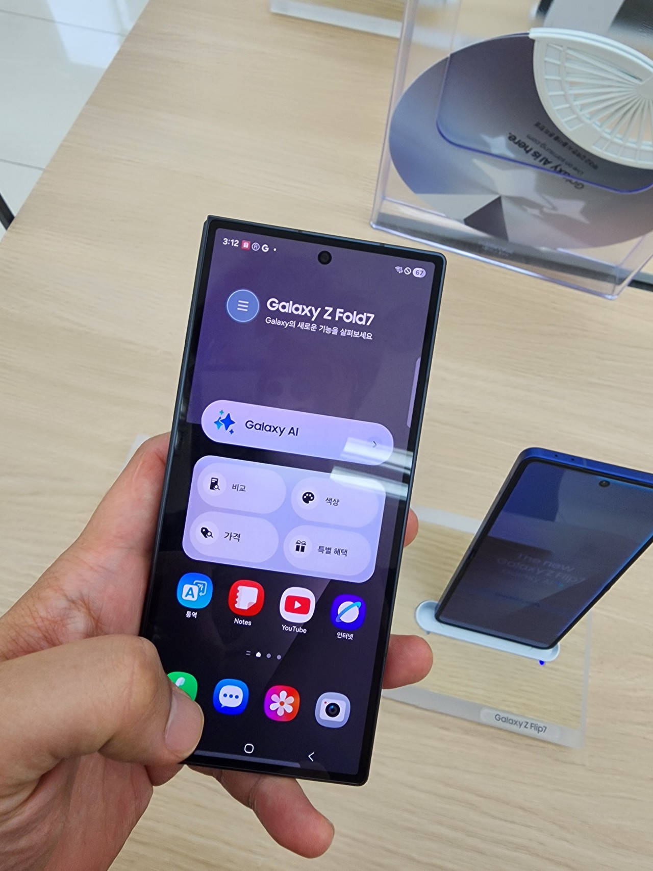 마치 자석에 끌린 쇳가루처럼, 정신을 차려보니 저는 폴드7 전시 코너 앞에 서 있었습니다. 그리고 제 손에 들린 폴드7.