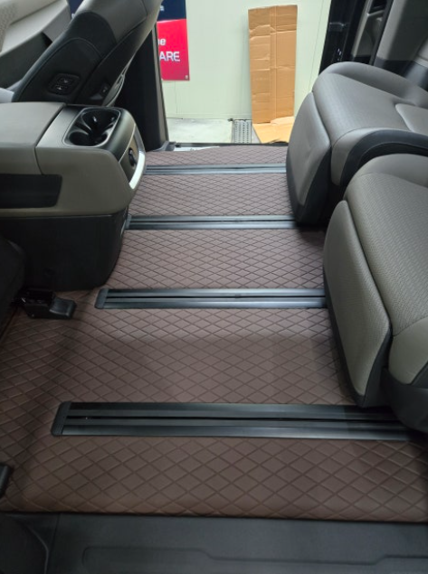 2열 독립 좌석 & 레일 연장: 장모님과 가족들이 넓게 앉으실 수 있도록 레일 연장과 평탄화, 바닥 모노륨 작업을 마쳤습니다.